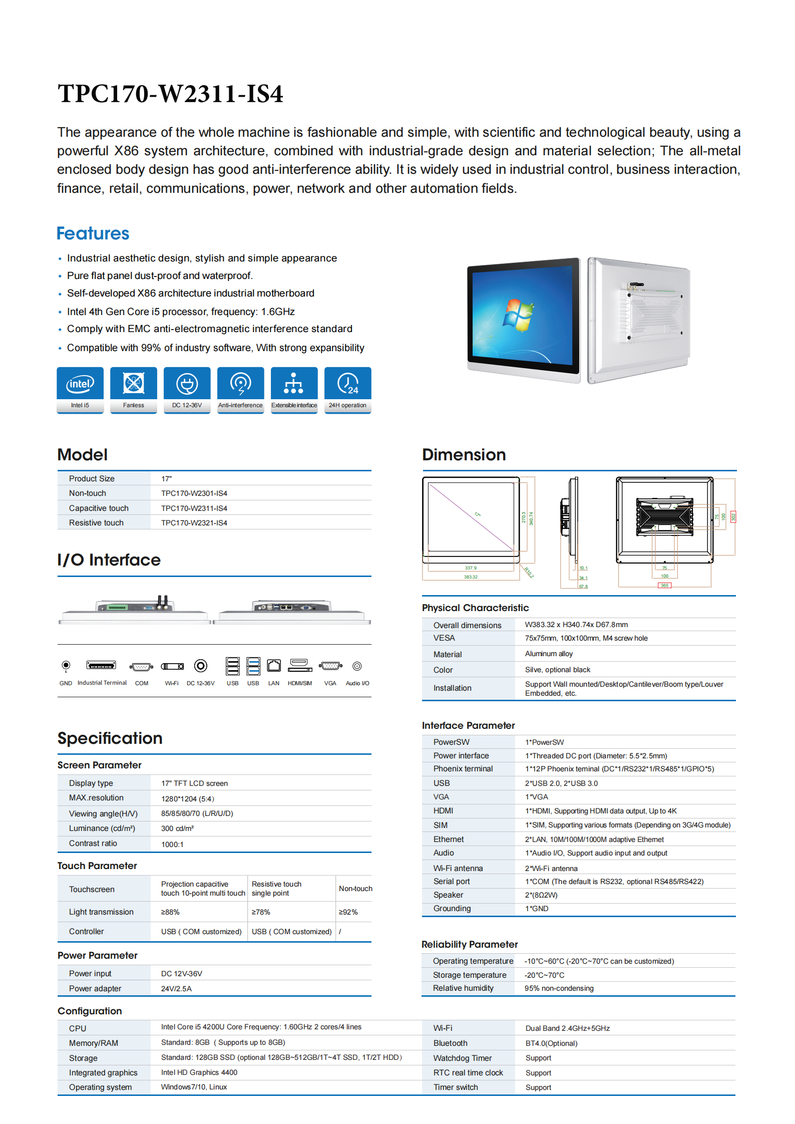 This industrial panel PC from professional manufacturers features a 17-inch industrial touch panel with dual capacitive/resistive touch. Powered by Intel Core i5-4200U processor and self-developed x86 motherboard, it represents one of the best industrial panel PC solutions. With pure flat dust-proof/waterproof design, EMC compliance, and 99% industry software compatibility, it delivers reliable performance for smart manufacturing and automation applications.
