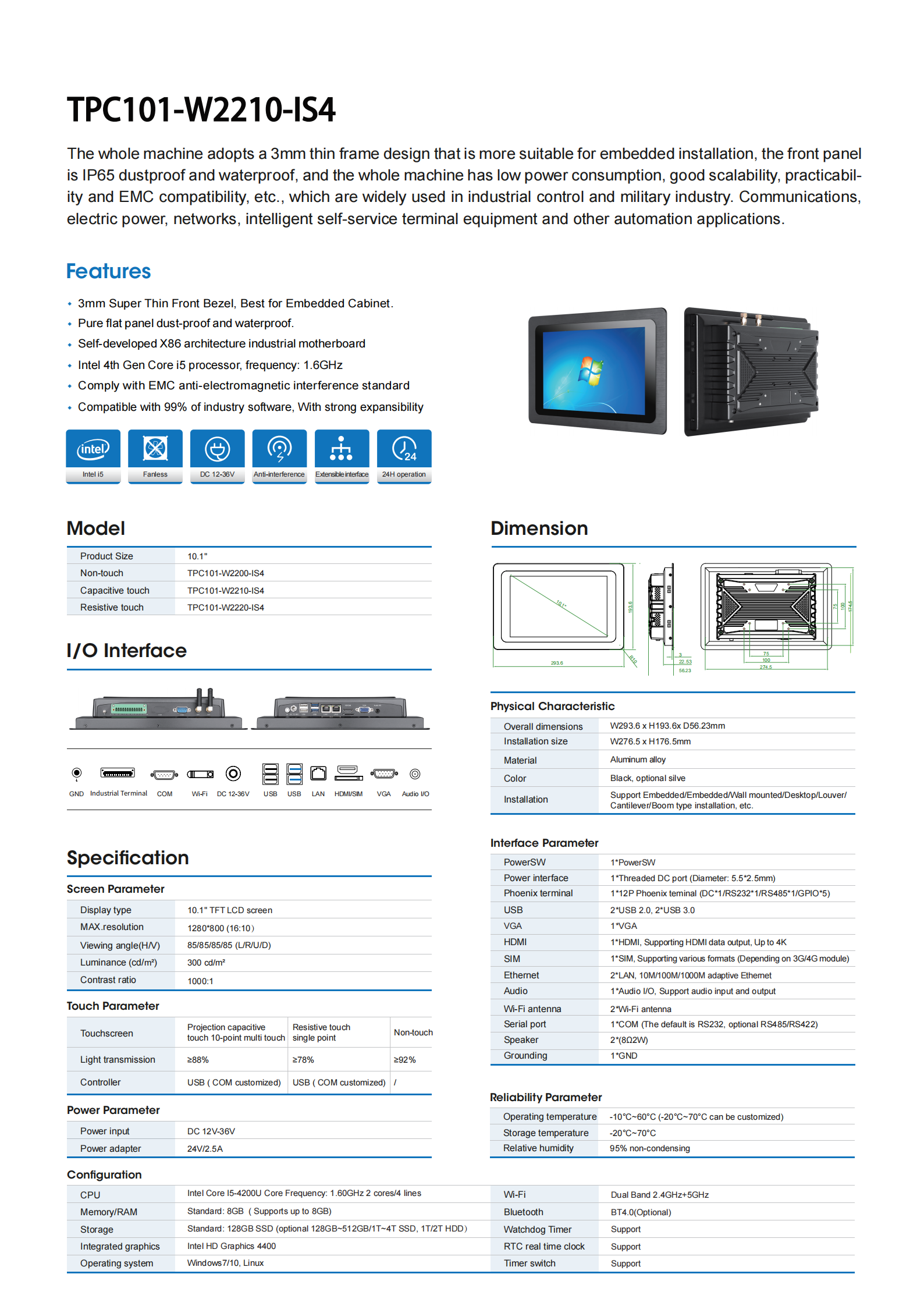 ●Robust Computing: Offers multiple processor options including Intel Celeron J6412, Core i5-4200U, or i5-6200U, providing flexible performance for demanding tasks.