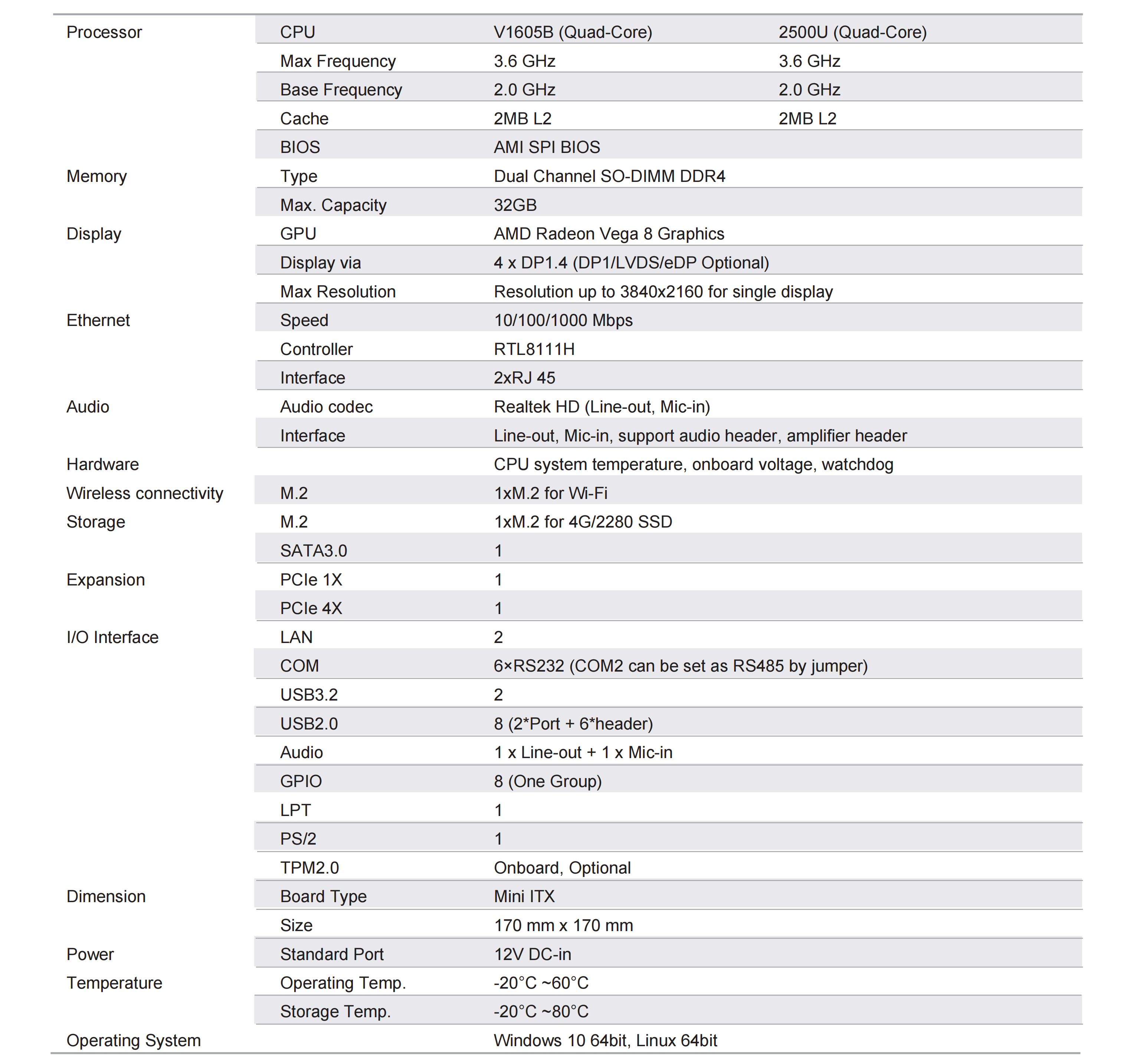 AMD V1605B 2 Lan DDR4 Industrial Mini ITX Motherboard
